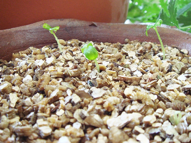 8/25 発芽を確認鉢からかわいい双葉が出てきました。