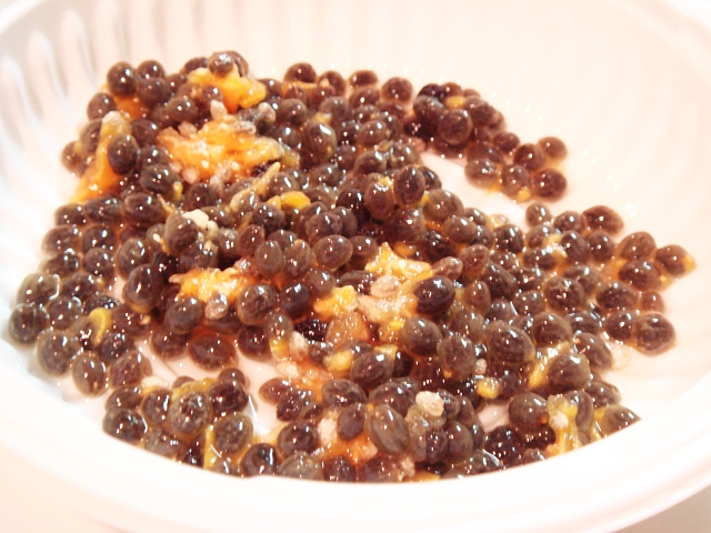 ちょっと取り残しのゼリー状物質がありますが、種は大量に取れましたのであまり気にしないことにします。