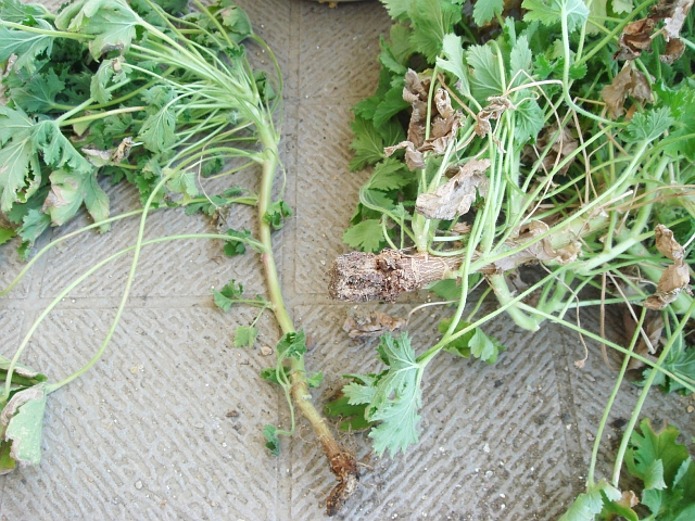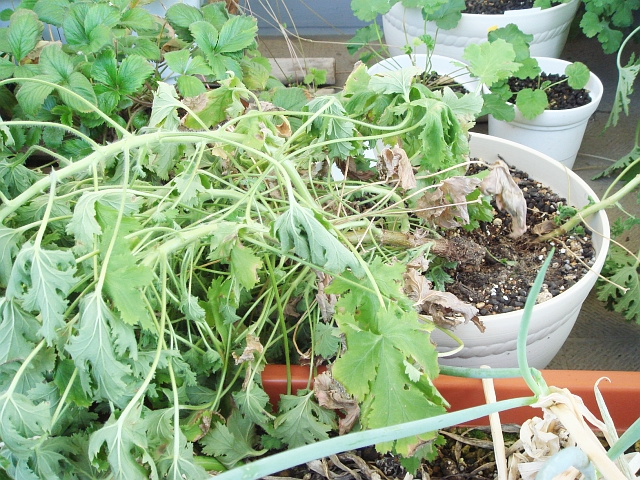 センテッドゼラニウムのプリティーポーリーは、根元から折れてしまっていました。不幸中の幸いにも、小さな子株が1つだけ残っていましたので、それを大事にまた育てます。