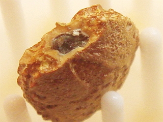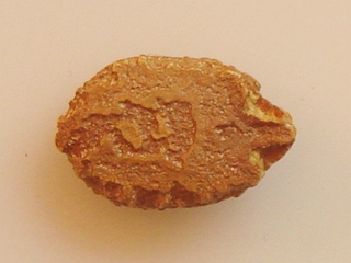 ゴーヤの種はこんな形をしています。長さ1cm程で、ゴツゴツとした凹凸のある硬い種です。