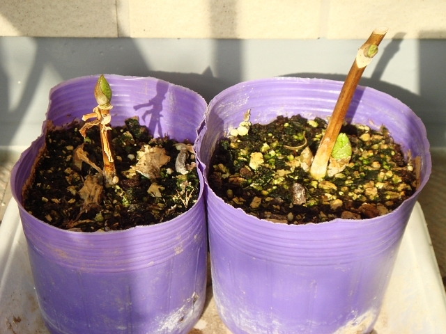 挿し木したこの株もずーっと根が生えず諦めていましたが、冬の間にいつの間にか根付いていたようです。