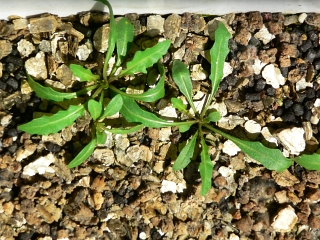 2008/02/17 本葉数枚出るが小さいまま本葉が出て1ヶ月ほど経って、こんな感じです。