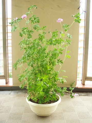 花メインの普通(?)のゼラニウムではなく香りメインのセンテッドゼラニウムにはまってます。そよ風でゆれるだけでも香りがたっていいですよ。ドライになった枯葉でもよい香りがします。
