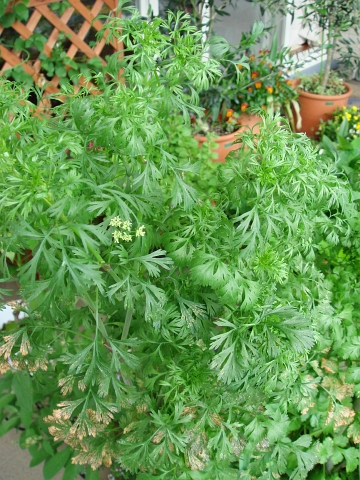同じセリ科のディルの花がそろそろ咲きそうなので、交雑を避けるため鉢を離さねばなりません。