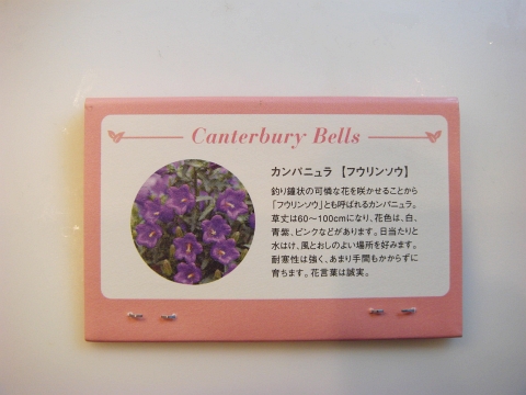 裏返してみると、花の写真が...。カンパニュラ【フウリンソウ】