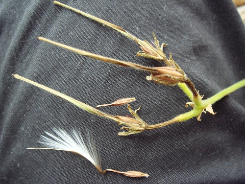 綿毛の軸のような部分がらせん状になっていたら、ゼラニウムなどのフウロソウの仲間かもしれませんね。
