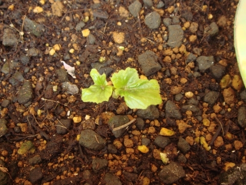 5/23の姿です。発芽した双葉は何なのかよくわからないぼろぼろでゆがんだ形でした。