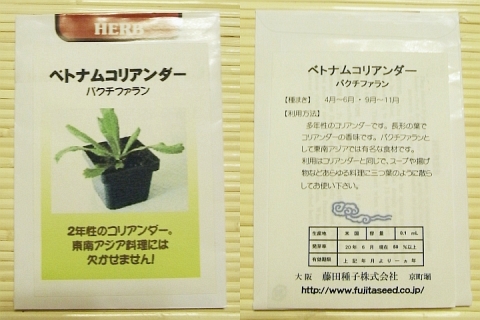 さて、今回こんな種を入手しました。ベトナムコリアンダー/パクチーファランと書いてあります。
