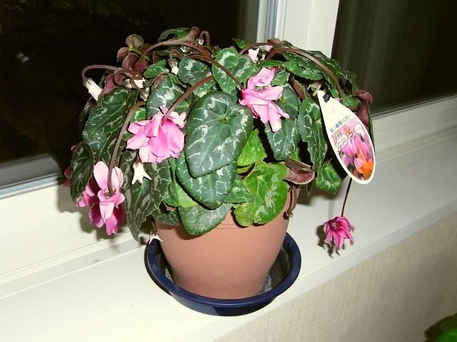 昨年2008年12月1日に投稿した、このミニシクラメンを覚えていらっしゃいますか?すがすがしい香りがする八重咲きの花が沢山咲いた、見事なミニシクラメンでした。