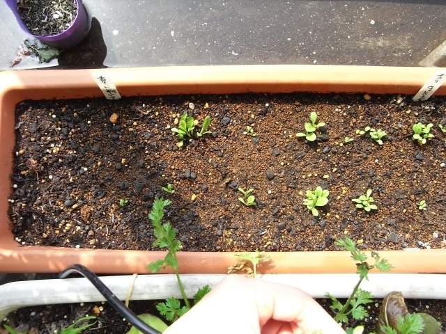 全体としては発芽にばらつきがありますね。間引きのうえ一部を移植して、バランスをとることにしました。