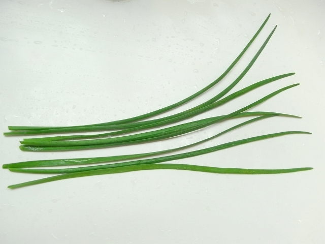 ということでちょっと収穫して試食してみることにしました。まだ細めで短いですが、切るとそこから透明な液体がたれてきて、なめたらニラの香りなのですがさわやかで、しかもとっても甘い汁でした。