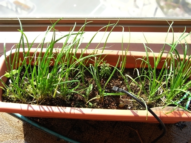 ニラが長さ25cmほどに生長してくれました。あまり適期ではなかったようですが昨年2008年10月下旬に種蒔きしました。