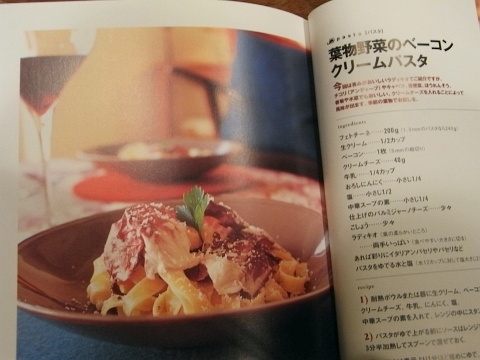 2品目はこちらです。121ページの葉物野菜のベーコンクリームパスタです。