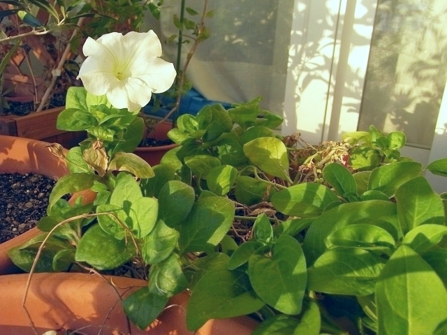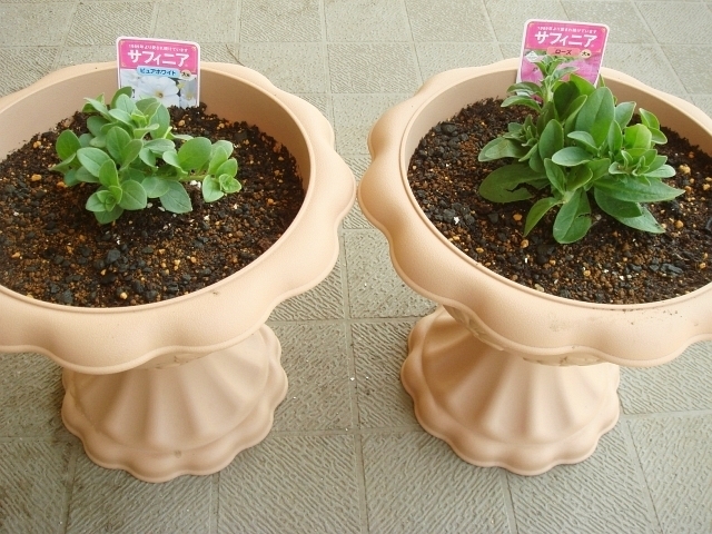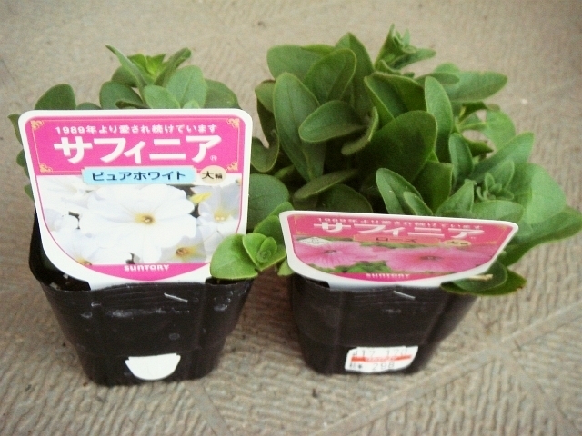 去年2008年3月に2種類の苗を購入して育て始めました。サフィニアのピュアホワイトとローズです。