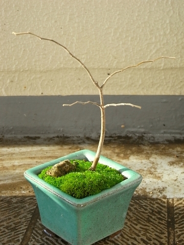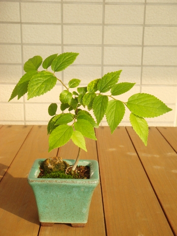 品種不明の謎の落葉樹の実生苗を、ミニ盆栽にして楽しんでいます。