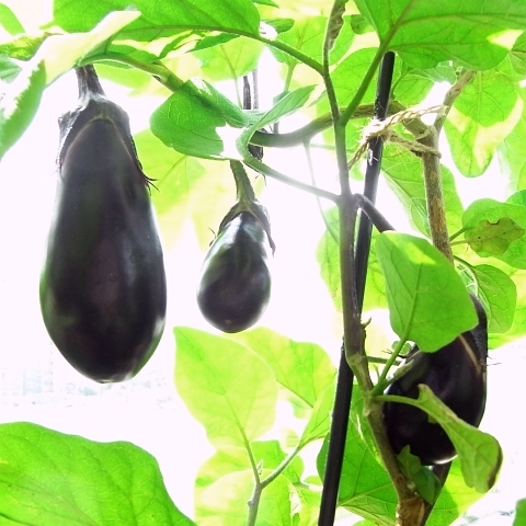 米ナスの方が入手しやすいというだけで、朝市やアジア系のスーパーへ行けば、ある程度簡単に各種ナスを手に入れる事は可能なんです。値段は米ナスに比べれば少々高いですけどね。苗も手に入れるのは、そう難しくないんです。一度だけ米ナスで代用が利くかなと思って作ってみたら失敗したんです。。。