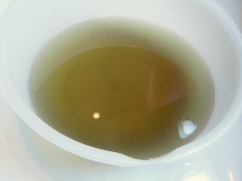 湯通ししたお湯は、なんと緑色に染まりましたよ。