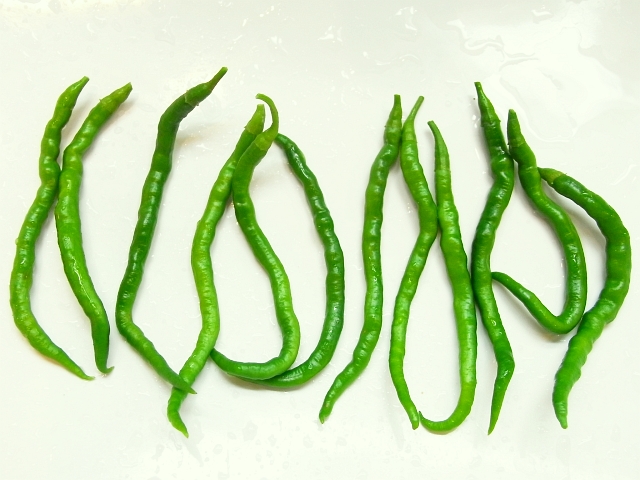 ひもとうがらしを加えて軽く炒め、塩胡椒で味を調えてできあがりです。