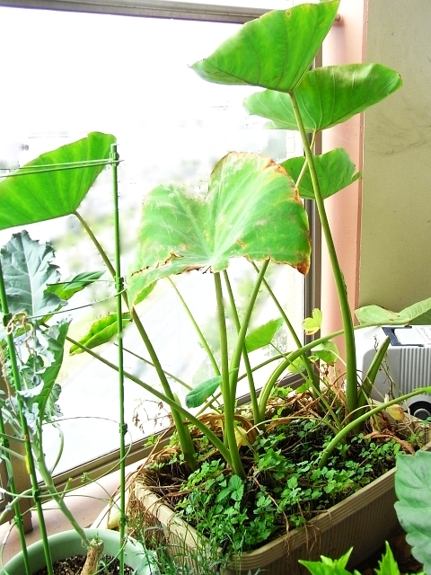 ベランダ菜園のさといもは、明日は中秋の名月ですしもうすぐ収穫です。