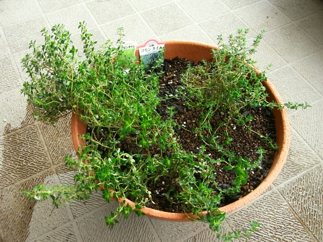 育てていたタイムが不注意で枯れてしまい、1ヶ月ちょっと前に苗を買ってこのように植えつけました。