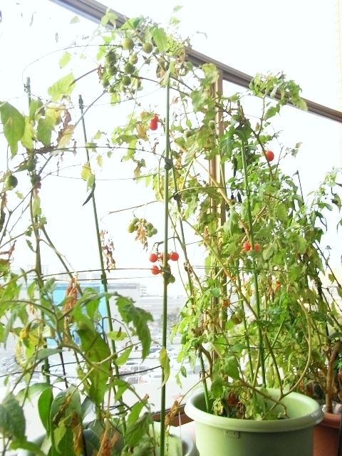 肌寒い日が続きますが、ミニトマトが赤くなり始めましたよ!