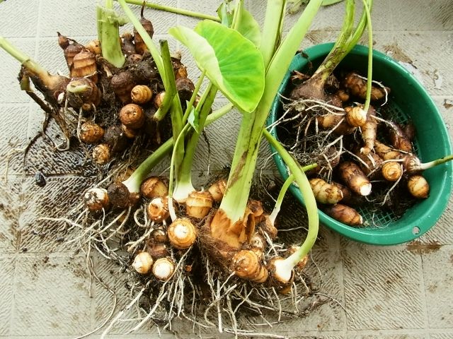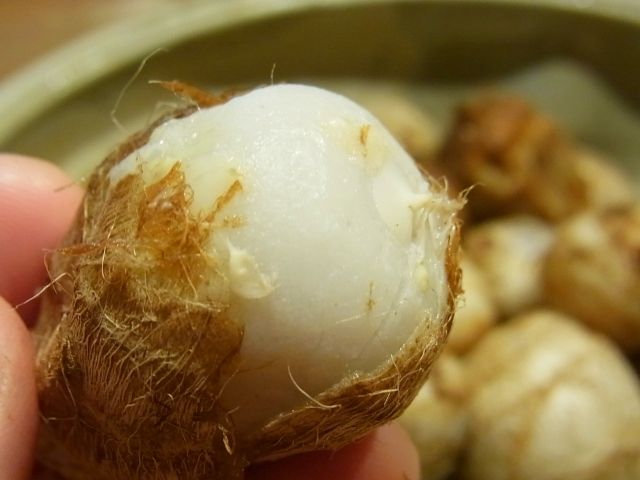 子芋も、葉を出してなくても自分の子供である孫芋をはやした部分がかためになります。