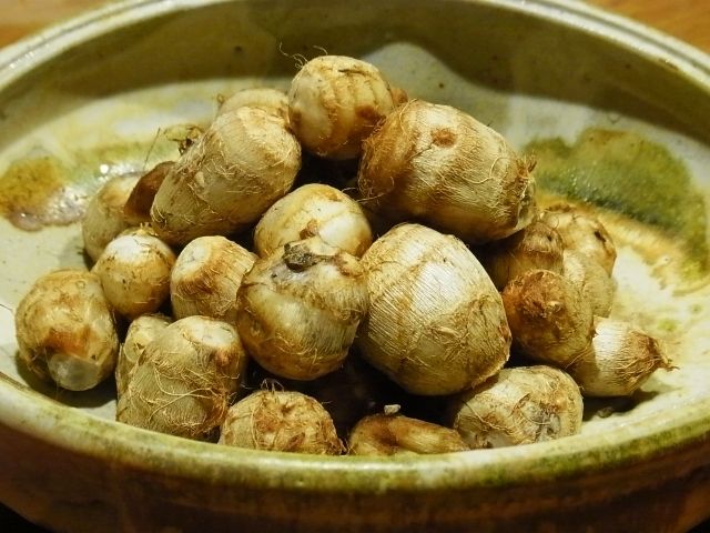親芋は葉を出し育てるためにかたくなり、ホクホクとした食感です。
