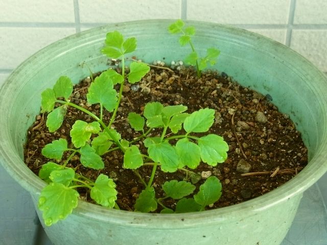こぼれ種でそこらじゅうからセリが発芽しています。