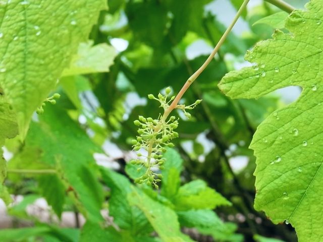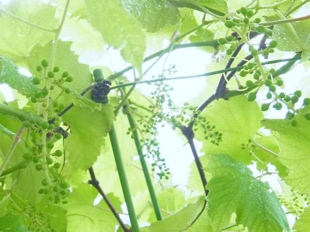 ブドウの花のあと、実がぷくっと丸くふくらんできました。