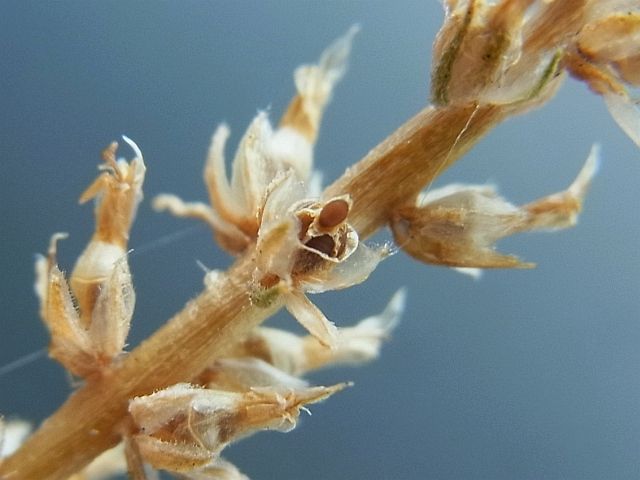 花穂の花のあとのカプセル状の実の中に、種が数粒ずつ入っています。