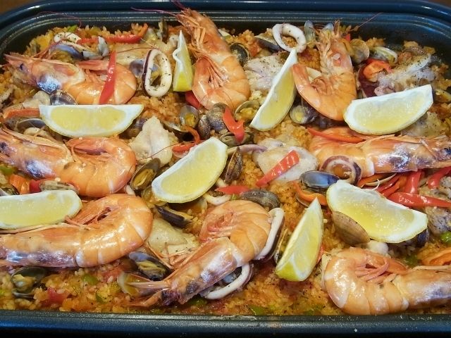 台風前に収穫した赤い伏見甘長唐辛子をパエリアに