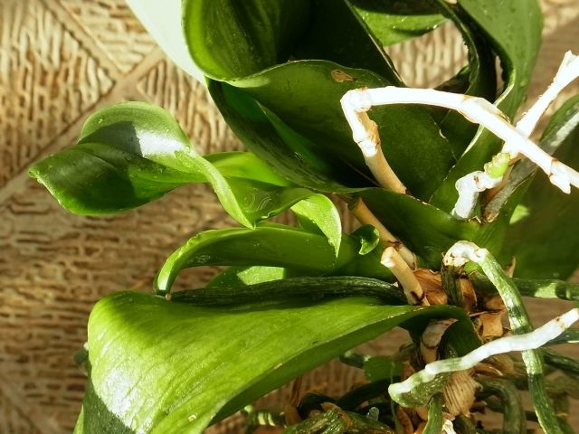 弱って枯れてきた胡蝶蘭に脇芽が生えていました