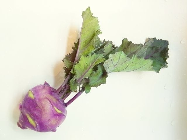 順調に育てば、こんな不思議な形のコールラビが収穫できますよ。