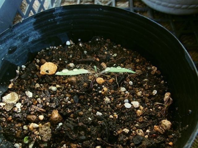 ニンジンとコールラビのプランターに勝手に生えていたミニトマトです。本葉が出始めました。