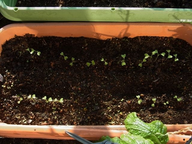先々週種蒔きした子持ち高菜に、本葉が見え始めました。