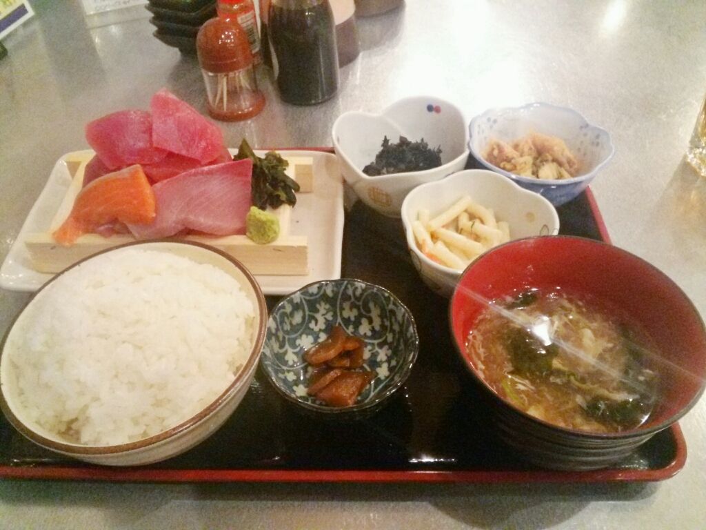 刺身は山盛りで鮪赤身とサーモン、ブリを1枚ずつという感じでした。