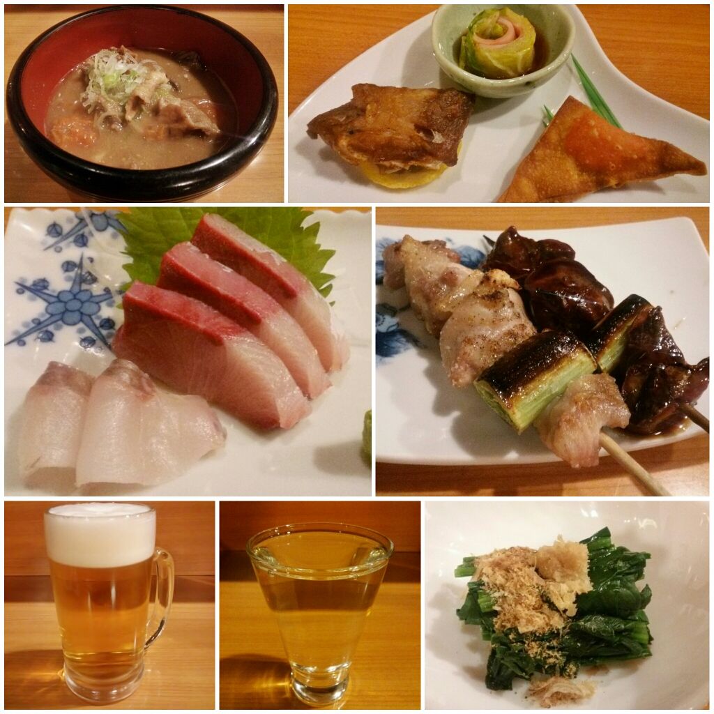 お通し、小鉢2品、焼鳥2本、刺身2点盛り、飲物2杯で2,000円で、その日その日の季節の素材でちゃんと手間をかけた料理が少しずついただけて、大変うれしいセットです。